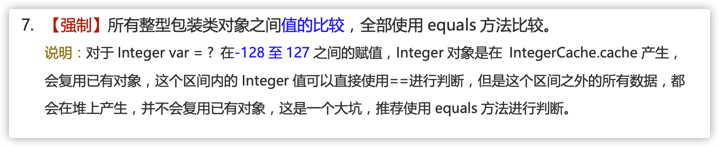记住:所有整型包装类对象之间值的比较,全部使用 equals 方法比较。