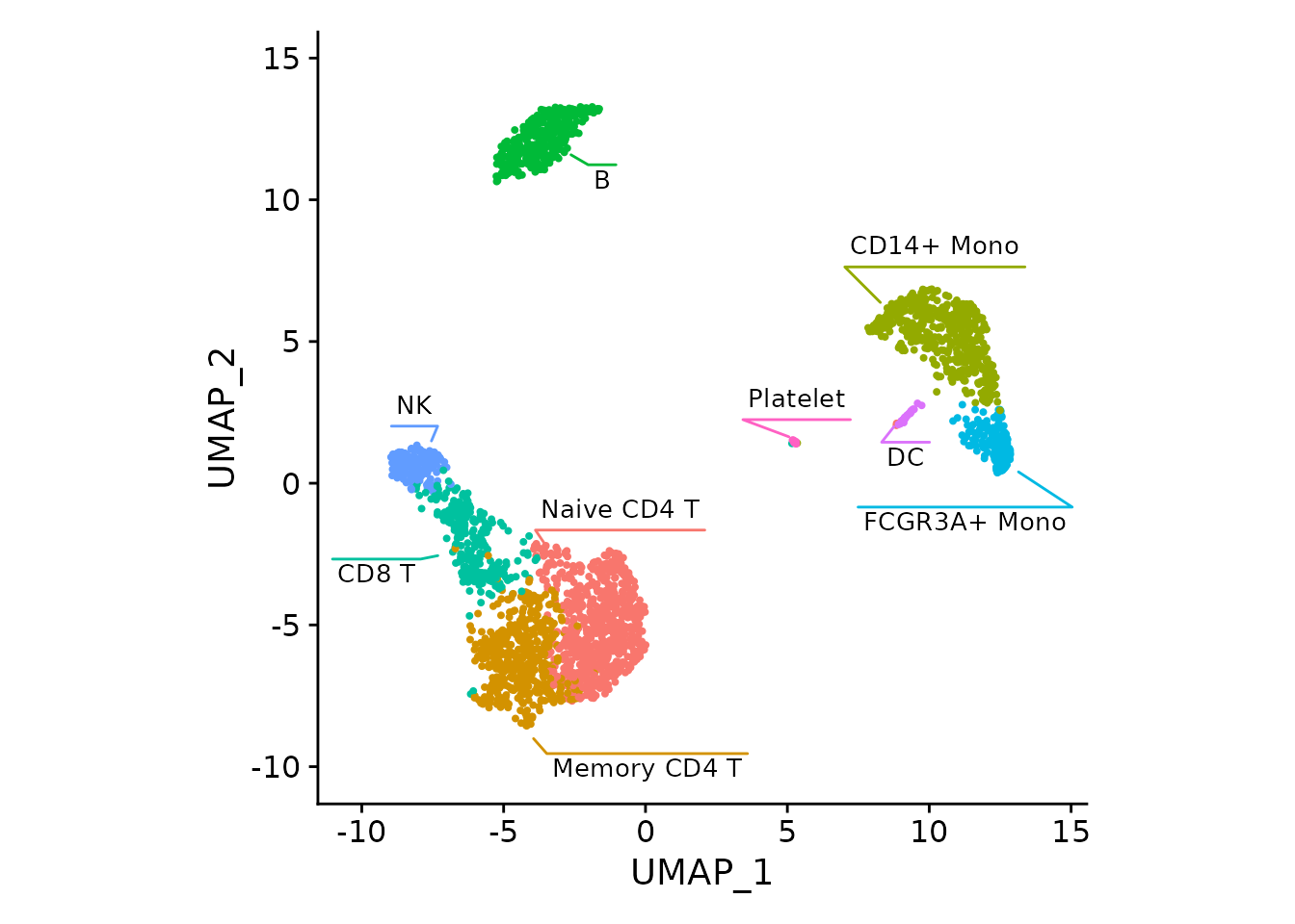 maskTable <- generateMaskSeurat(pbmc3k)DimPlot with the mask and labels: