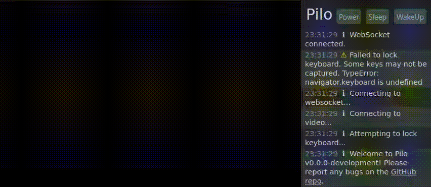 | GIF demo of Pilo's web interface, showing a user booting a system and accessing the BIOS and disk encryption passphrase screen via the web. |